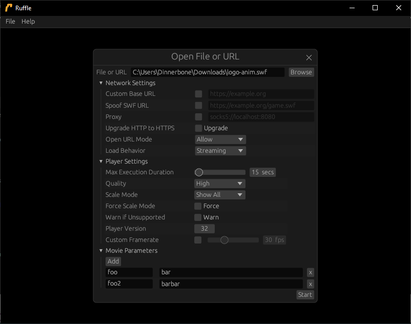 Tonight's Ruffle build will feature some major desktop interface improvements from @Dinnerbone!